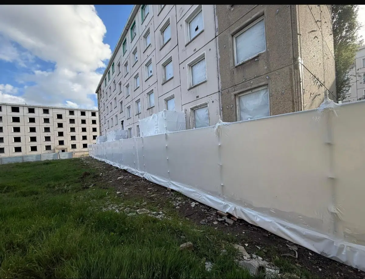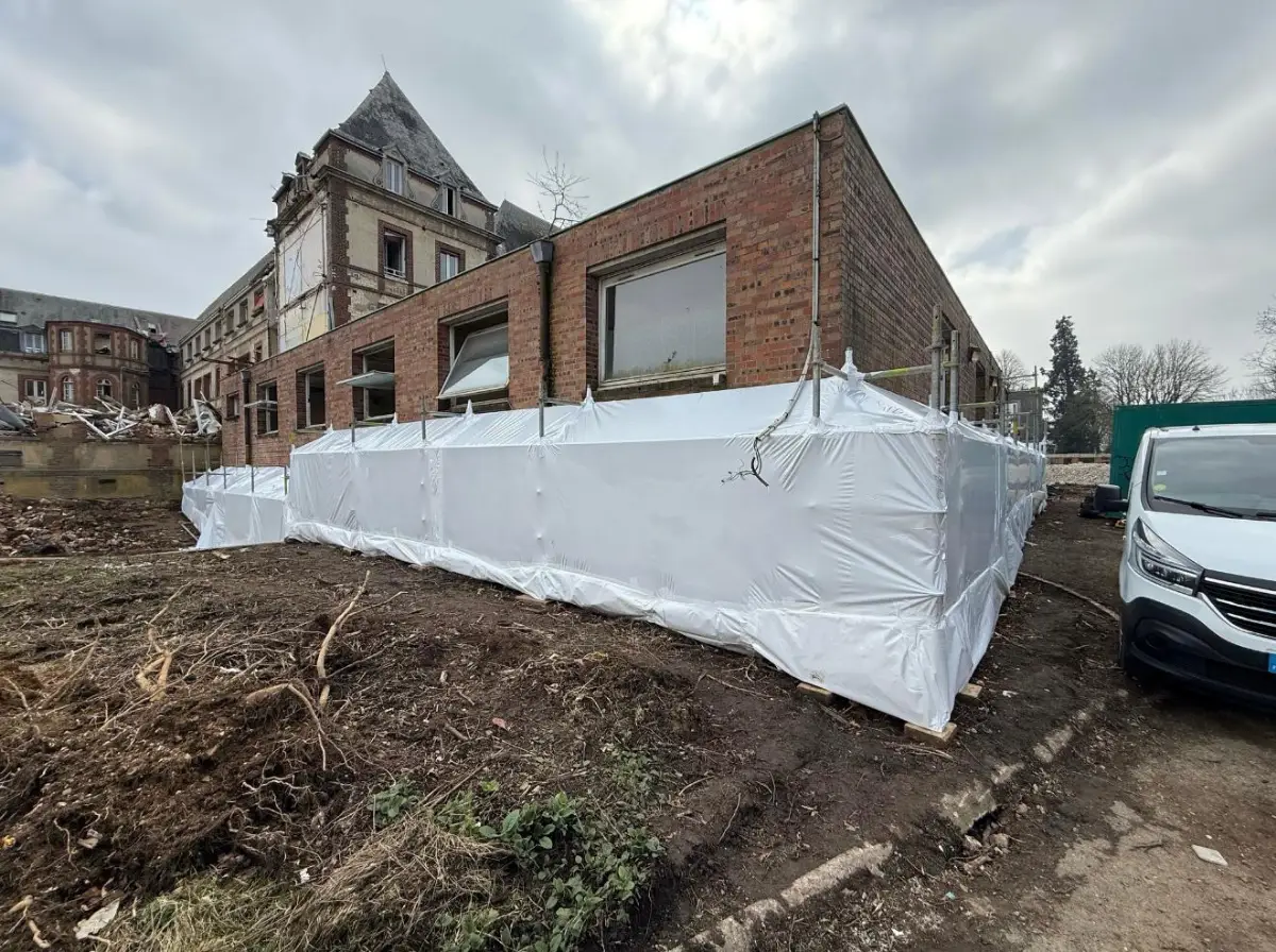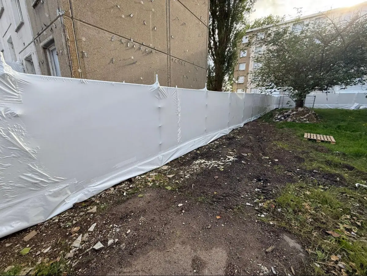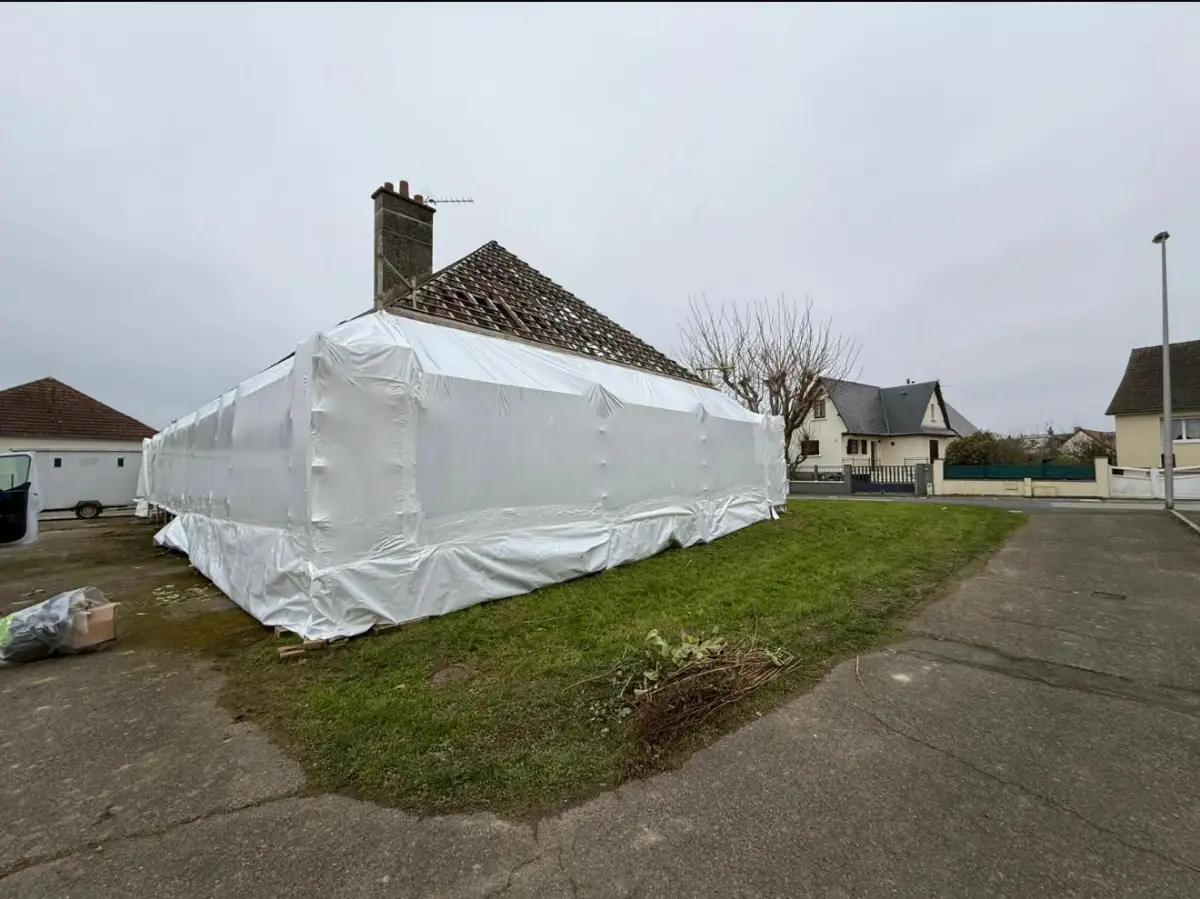 Qu'il s'agisse de créer un toit provisoire pour une rénovation lourde ou de sécuriser un retrait de matériaux dangereux, notre maîtrise du thermobâchage assure une isolation parfaite et une conformité totale aux normes environnementales.