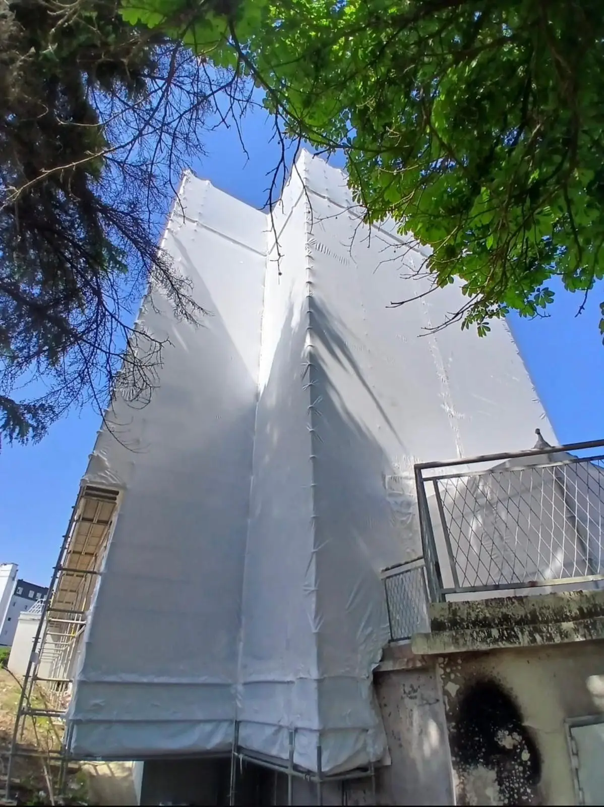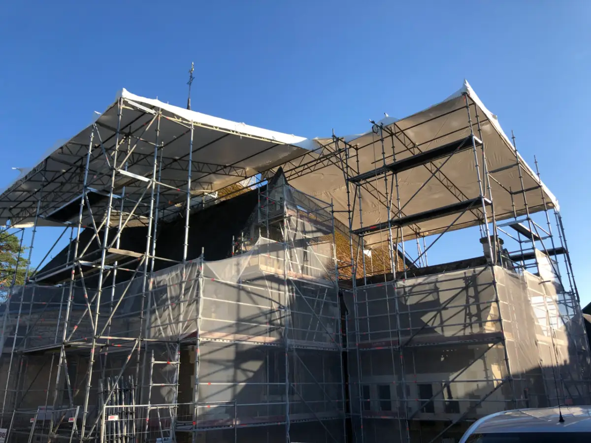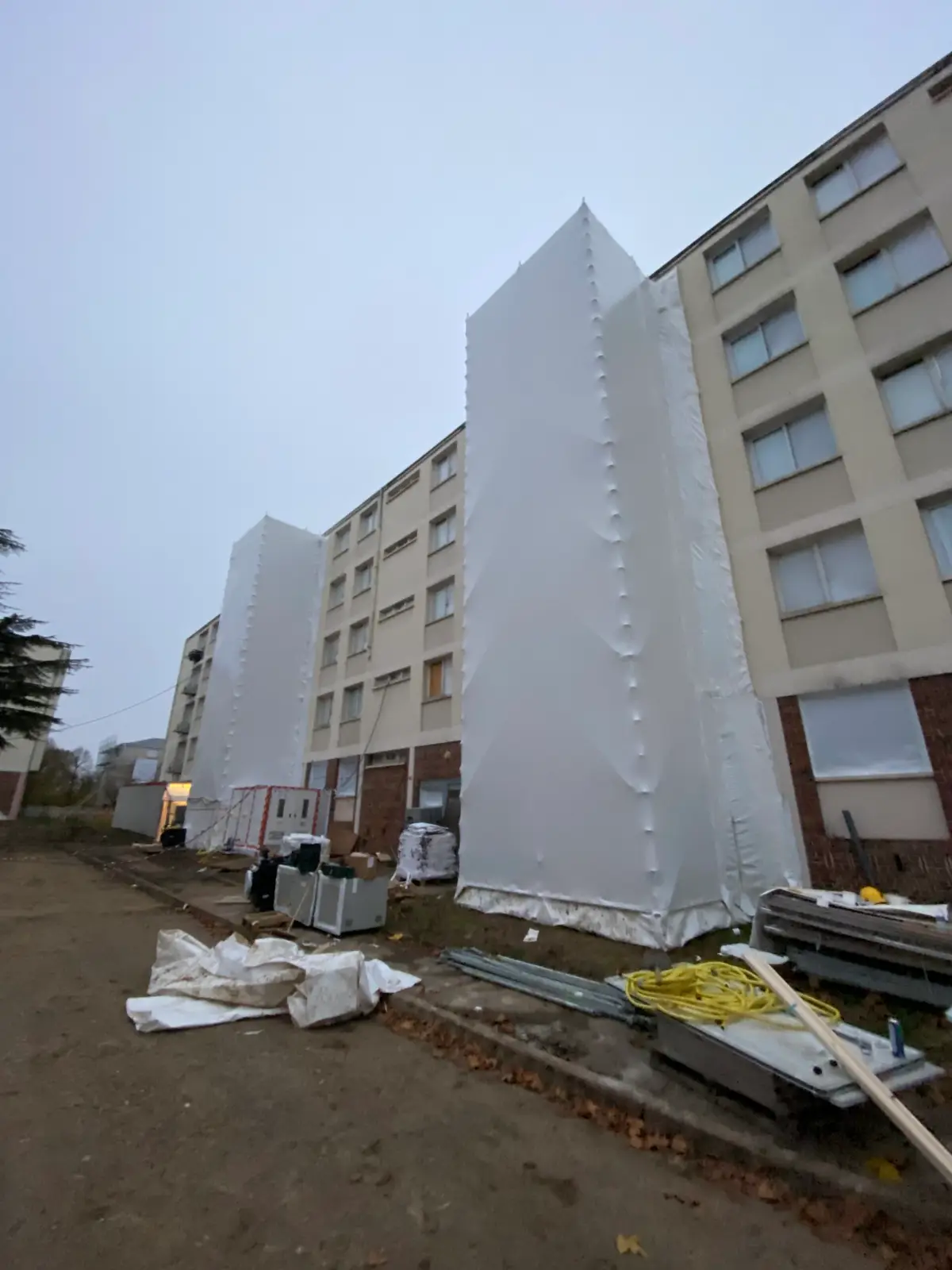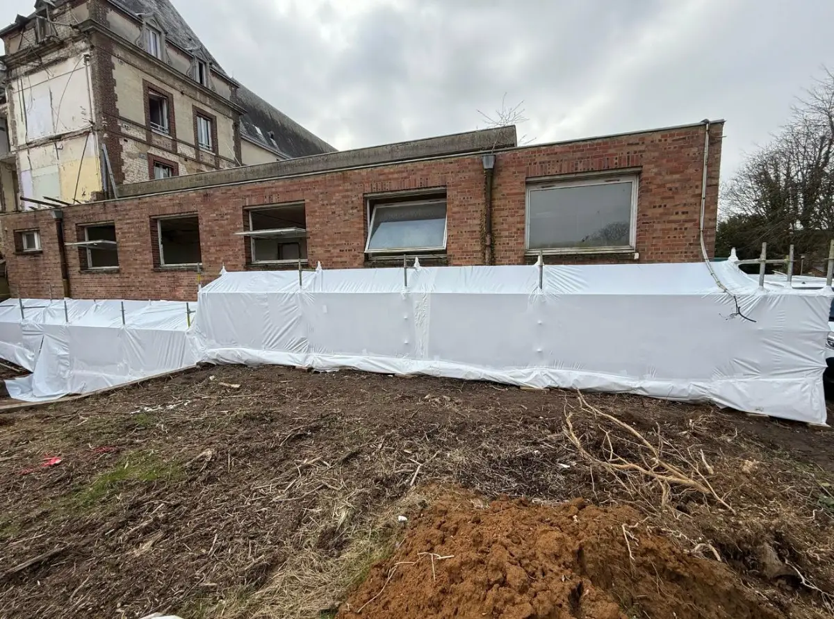 Qu'il s'agisse de créer un toit provisoire pour une rénovation lourde ou de sécuriser un retrait de matériaux dangereux, notre maîtrise du thermobâchage assure une isolation parfaite et une conformité totale aux normes environnementales.