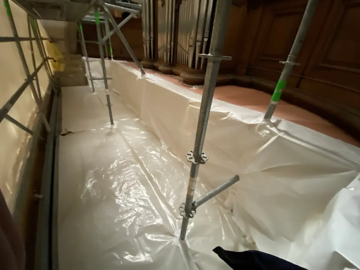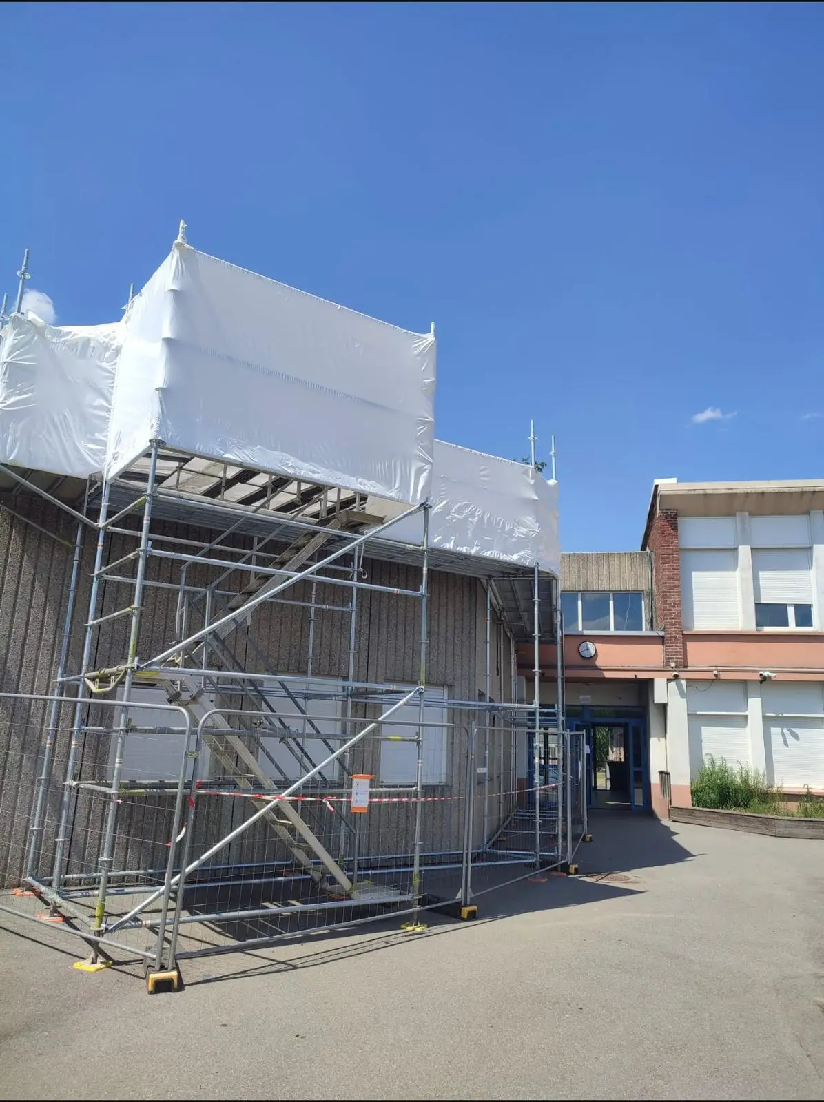 La mise en œuvre de la bâche thermoplastique par SCAFF THERMOS repose sur un savoir-faire technique rigoureux, notamment lors de l'assemblage réalisé au chalumeau. Cette soudure thermique permet de rétracter la bâche pour qu'elle épouse parfaitement les formes de l'échafaudage ou de la structure, créant ainsi un cocon totalement étanche et résistant au vent. Cette méthode est indispensable pour les chantiers de désamiantage, où le confinement total est une obligation légale pour empêcher la dispersion de fibres d'amiante dans l'atmosphère.